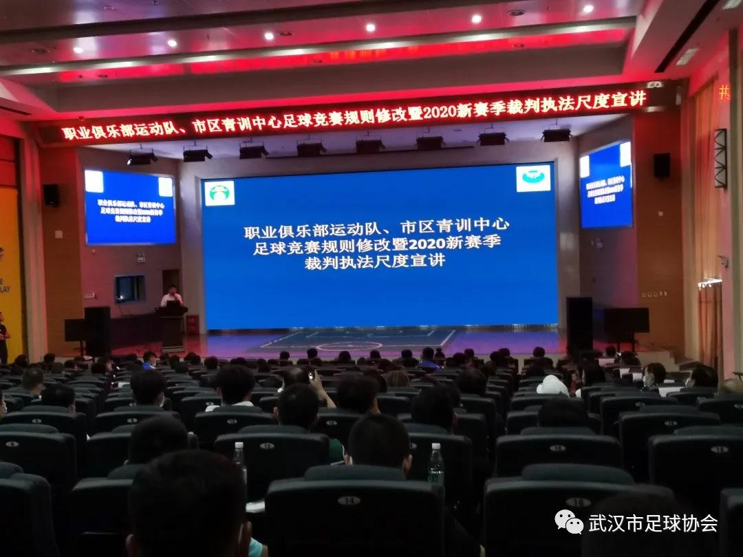 7月14日,武汉足协在塔子湖足球训练基地组织进行了《足球竞赛规则》新修改条款的培训及2020赛季中国足协职业联赛裁判执法尺度宣讲,在武汉市足协注册的武汉卓尔(中超)、武汉车都江大女足(女超)、武汉三镇(中乙)、湖北华创(中冠)、武汉弗瑞曼(中冠)、武汉博发(中冠)的全体运动员、教练员以及市区青训中心的全体青训教练员共200余人参加了培训。