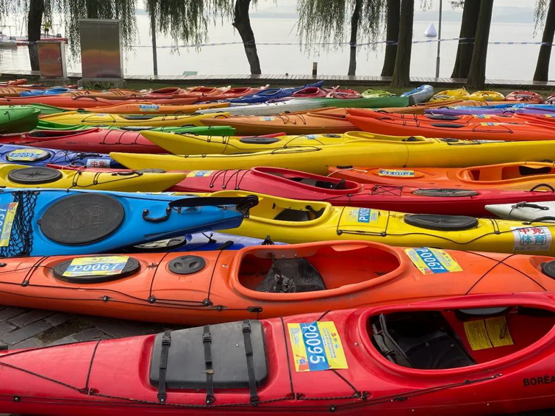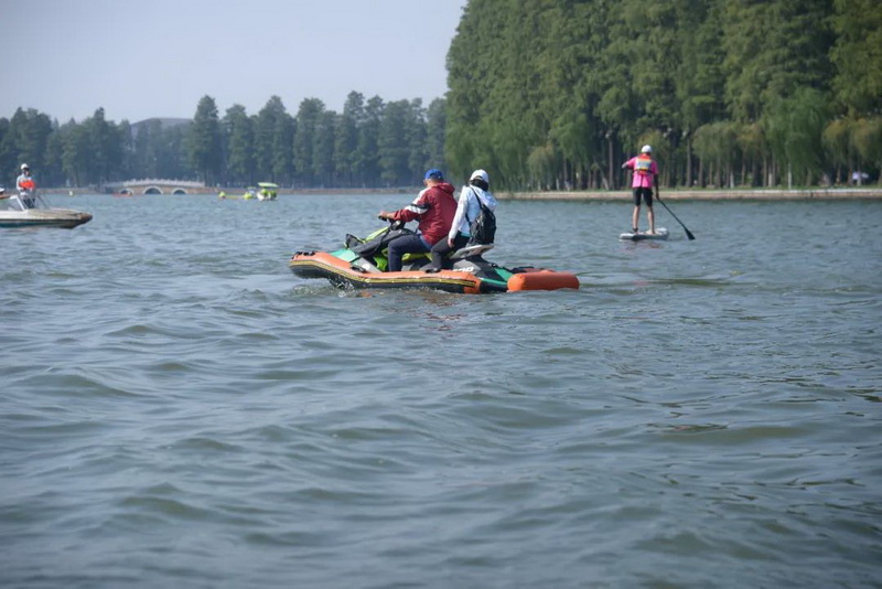在最具观赏性的环东湖皮划艇马拉松赛中,55名赛艇好手“打卡”风景秀丽的东湖景点,或一人一艇独自成景,或奋力拼搏,经过2个半小时的角逐,市民杨海波以领先第二名近2分钟的优势夺得武汉首届“艇马”12.3公里的环东湖马拉松赛冠军。