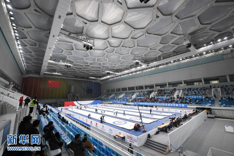 这是2019年12月8日,观众在“冰立方”观看中国青少年冰壶公开赛女子冰壶决赛。新华社记者 鞠焕宗 摄