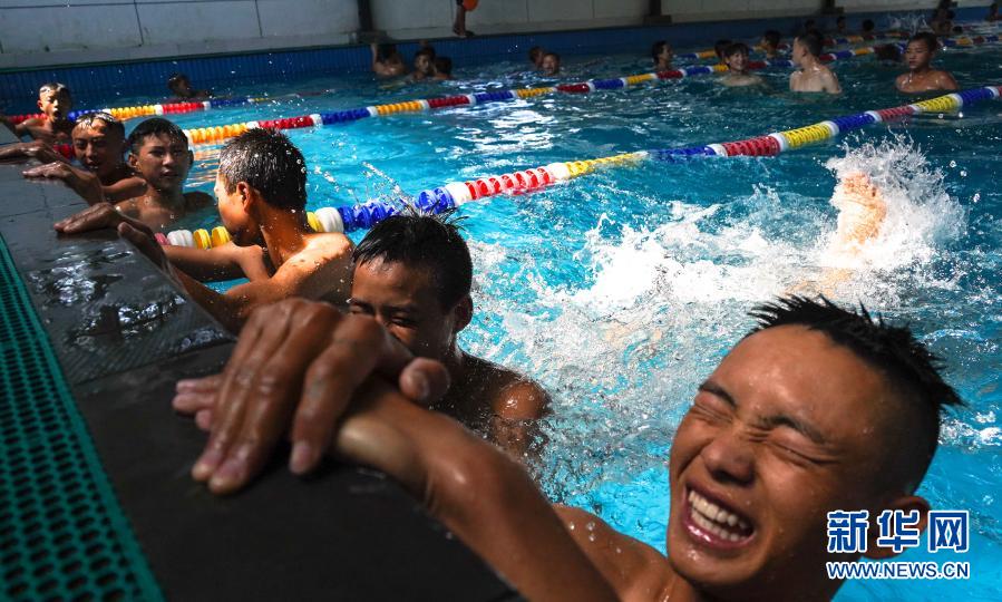 这是2020年9月7日,四川凉山州越西县西城中学初三16班的学生在上游泳课。新华社记者 王曦 摄