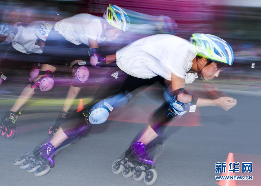 这是2020年6月23日,长春市冬季运动管理中心的小运动员在长春体育中心表演轮滑。新华社记者 许畅 摄