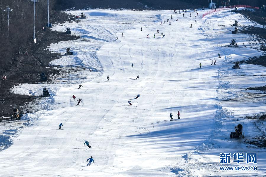 这是2020年11月14日,滑雪爱好者在吉林市北大湖滑雪场滑雪。新华社记者 颜麟蕴 摄