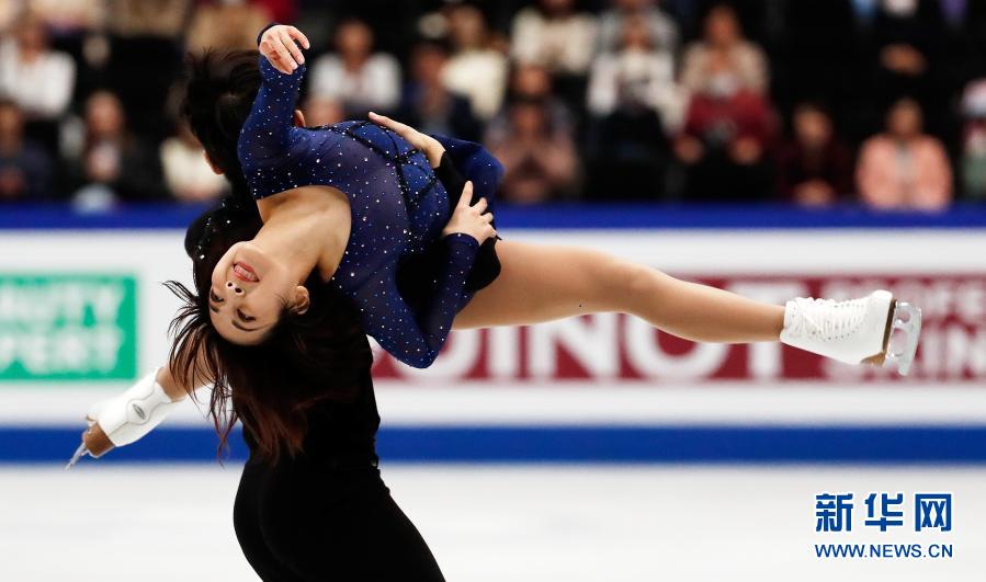 这是2019年3月21日,隋文静(上)/韩聪在花样滑冰世界锦标赛双人滑自由滑比赛中。新华社记者 王丽莉 摄