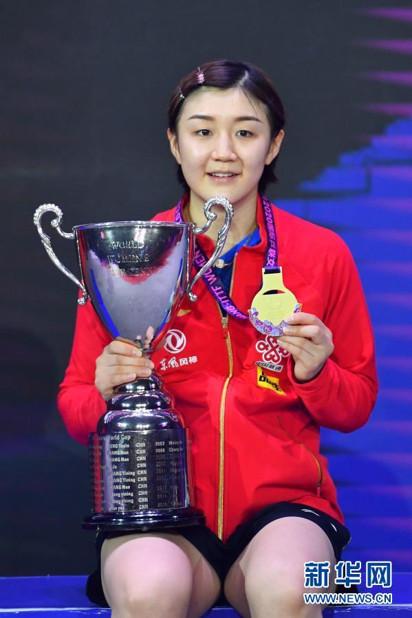 这是2020年11月10日,陈梦在国际乒联女子世界杯颁奖仪式上。新华社记者 朱峥 摄