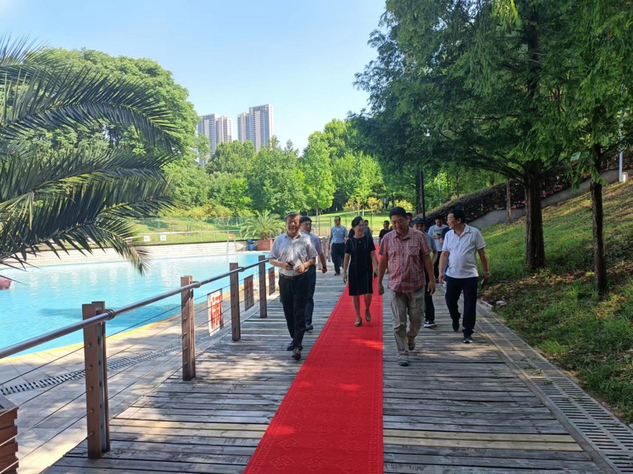 王沈顺等首先来到月湖天然游泳场了解情况,该游泳场于2009年投资3000万元引汉江水入池而建成并开放,总面积近8000平方米,可容纳2000人游泳,分儿童池、浅水池、深水池。在即将开始的2022年武汉青少年体育夏令营活动中,这里将进行桨板和游泳项目的免费培训,同时还将对中小学生提供免费游泳服务。