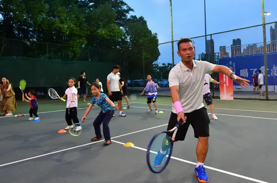 开幕式期间,2023年“趣谷杯”武汉市第十一届全民健身运动会健身操舞比赛、网球比赛、市民网球公益体验活动,分别在武汉全民健身中心篮球场、网球场进行,1100余名选手和体育运动爱好者积极参与其中,充分感受到了体育运动带来的健康和快乐。
