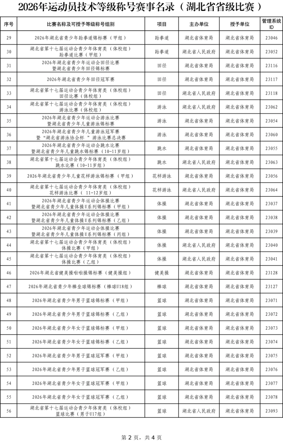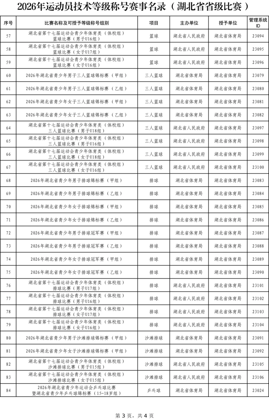 四、足球项目2026年运动员技术等级称号赛事名录另行发布。