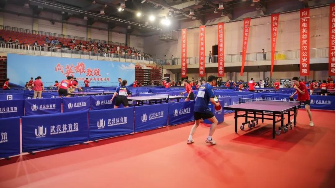 时隔5个余月,在武汉体育馆举行的“向英雄致敬”乒乓球邀请赛,这场比赛是武汉解封后举办的第一项正式线下体育赛事。