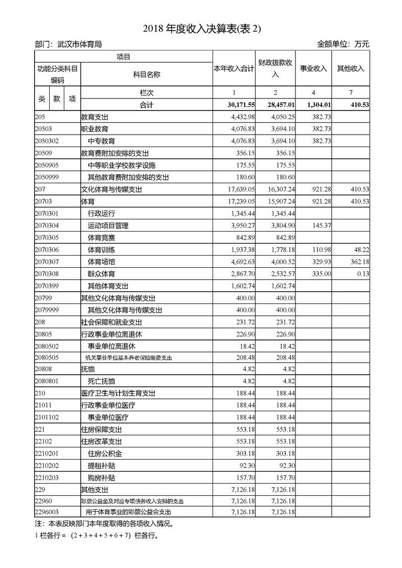 第三部分 武汉市体育局2018年度部门决算情况说明