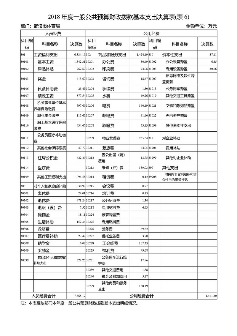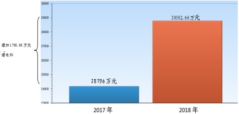 2018年度收、支总计30,502.65万元。与2017年相比,收、支总计各增加1706.65万元,增长6%,主要原因是行政事业单位人员养老保险和职业年金增加以及新增了大型赛事活动项目经费等。
