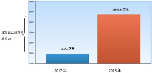 2018年度财政拨款收、支总计28,563.83万元。与2017年相比,财政拨款收、支总计各增加1,811.83万元,增长7%。主要原因是行政事业单位人员养老保险和职业年金增加以及新增了大型赛事活动项目经费等。