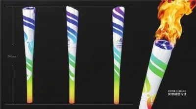 武汉市第十二届运动会火炬沿袭会徽设计,以会徽形态为出发点,螺旋上升的彩色赛道形态附着火焰主体,出火口采用车轮毂与梅花形态的结合,保证运动会设计统一性的同时也确保了传递过程中的稳定与安全,成为本届市运会传递城市文化、热情与创新的载体。